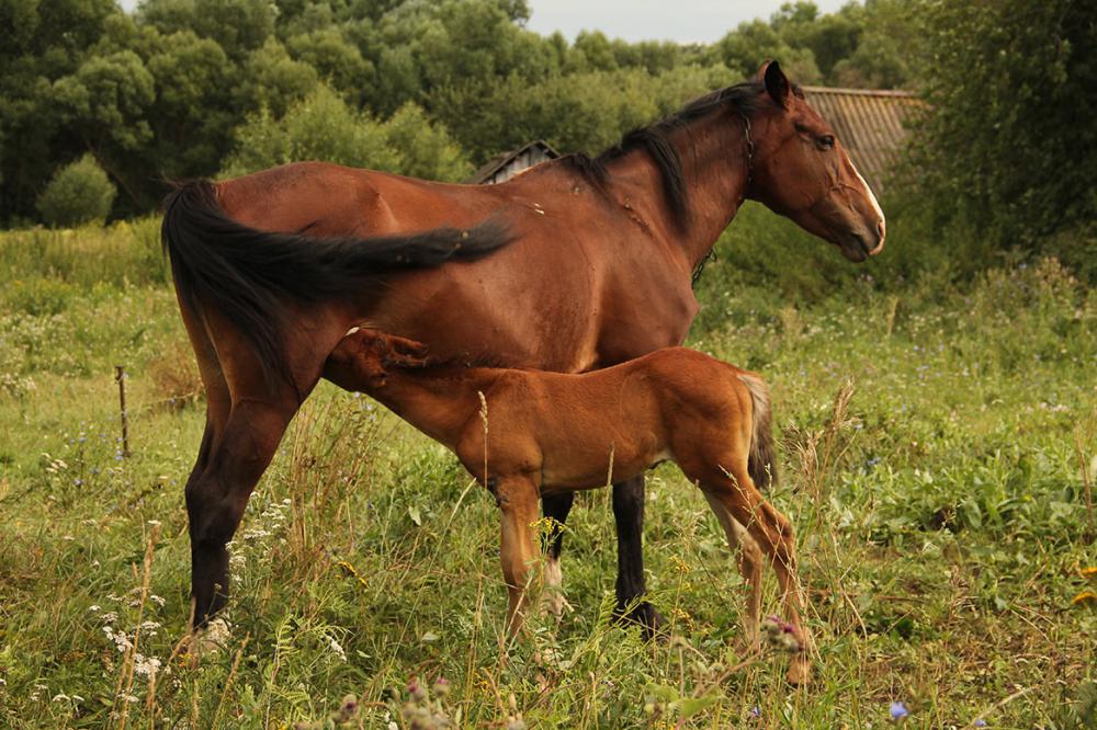21. Беременность лошади длится в среднем 340 дней. На свет появляются в большинстве случаев один, редко два жеребенка. Через несколько минут после рождения, они могут самостоятельно передвигаться