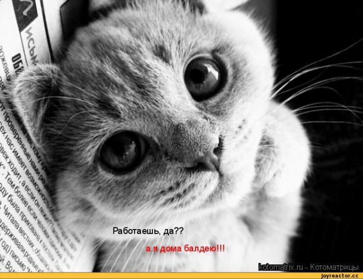 Смотрю утром — у кота нет половины усов. Вставил ребёнку, чтоб над животным не издевался. Вечером смотрю — усы отсутствуют напрочь. Вставил ещё ребёнку. Сейчас сижу, а эта безусая морда подходит к системнику и в кулер на боковой крышке запихивает брови… бреется сцуко.