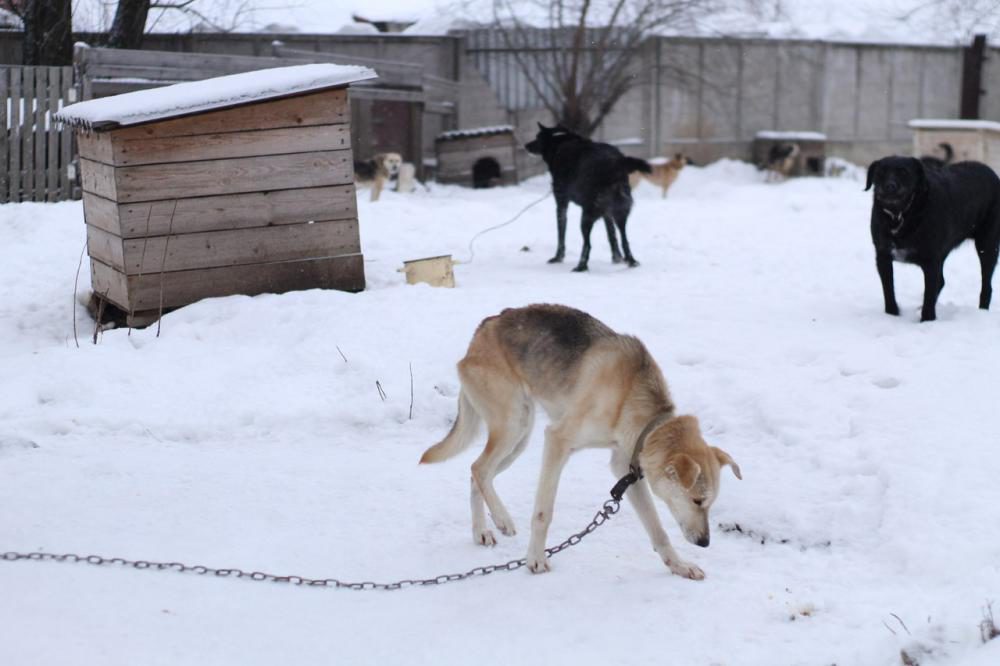 Животные представляют собой скелеты, обтянутые кожей, живут они в хлипких, неутепленных будках без клочка сена.