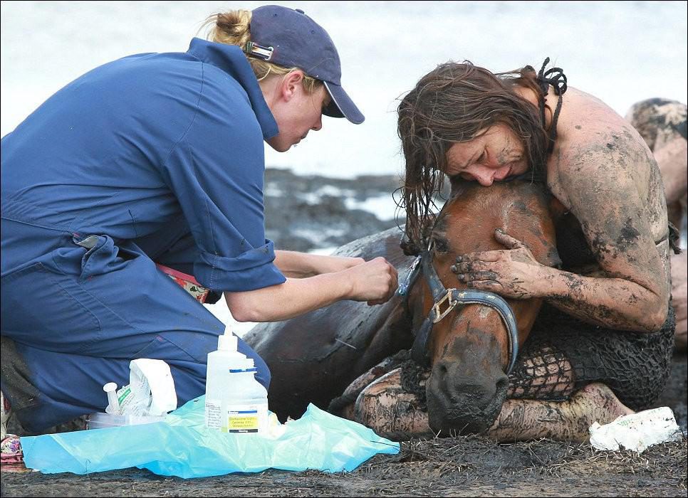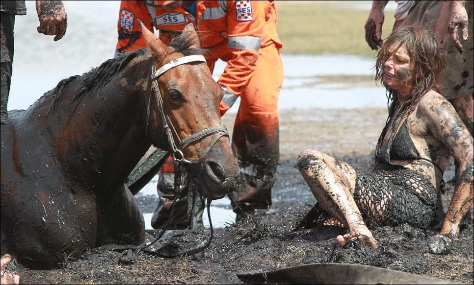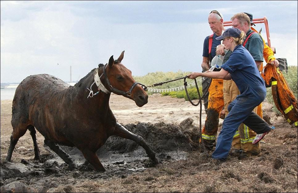 Это – фотоистория о спасении лошади по кличке Астро, которая попала в трясину на берегу залива недалеко от Мельбурна. В течение трех часов, ее хозяйка Николь старалась удержать Астро на поверхности, пока ту постепенно засасывала грязь. А тем временем начался прилив…