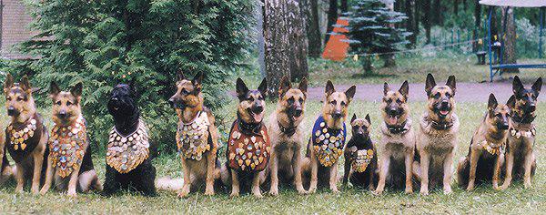 <Работа военных собак при этом выглядела очень эффектно. Ход выставки широко освещала пресса. Вскоре клубы служебного собаководства стали организовываться по всей стране… С началом войны московские областной и городской клубы служебного собаководства отправили на передовую около 14 тысяч своих питомцев. Активное участие в комплектовании специальных частей принимали также Казанский, Горьковский и Тамбовский клубы.