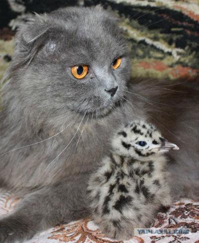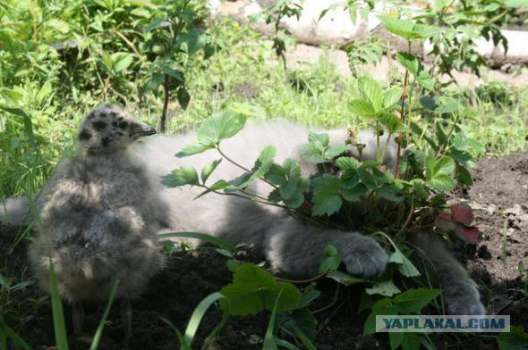 Как коты ухаживали за птенцом чайки