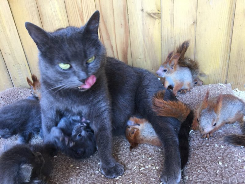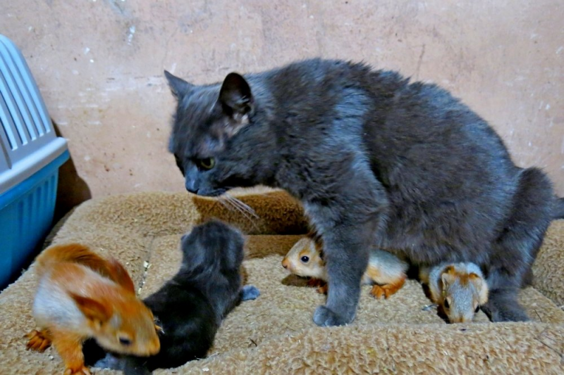 По счастливому совпадению, незадолго до того, как нашли бельчат, Мурка родила четырёх котят.