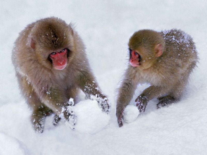 6. Молодые макаки могут делать снежки ради удовольствия. Когда выпадает снег, эти милые создания начинают делать снежки просто так, для веселья.