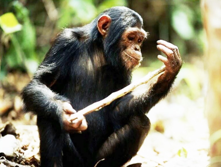 21. Детеныши шимпанзе играют с палочками и камешками так же, как дети играют с куклами. Они представляют себе малышей, за которыми нужно ухаживать.