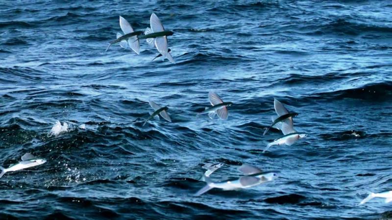 Сильное впечатление производит вид стаи из тысячи летучих рыб, поднявшейся в воздух.