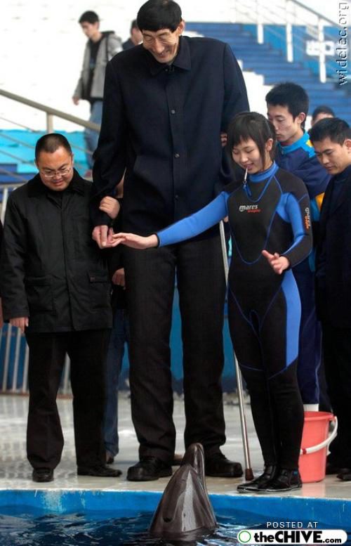 54-летний китаец за свой рост попал в Книгу рекордов Гиннесса. Засучив рукава, великан дотянулся до желудка занемогших дельфинов. Он извлек из обоих своих пациентов несколько кусков пластика, успешно справившись с "операцией", которая прошла безо всякого наркоза.