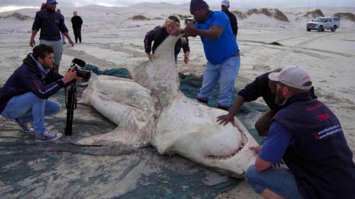 Длина их останков варьируется от 2,7 до 4,9 м. На всех телах были обнаружены похожие раны, расположенные между грудными плавниками и печенью. Как выяснилось, на акул охотилась группа касаток, недавно замеченная в том же регионе.