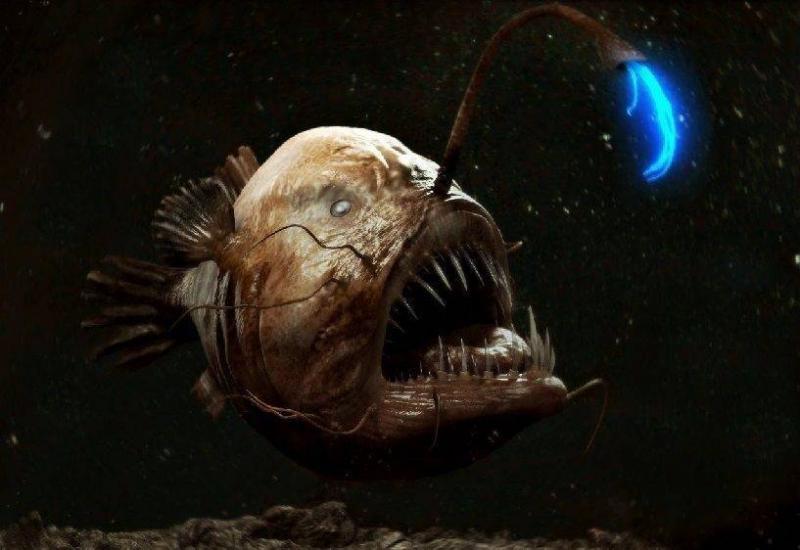 Ещё один грозный хищник. Учитывая, что свет под толщу воды не проникает, удильщик обзавёлся личным фонариком. У рыбы есть биолюминесцентный орган, использующийся для общения с сородичами и в качестве приманки для обывателей.