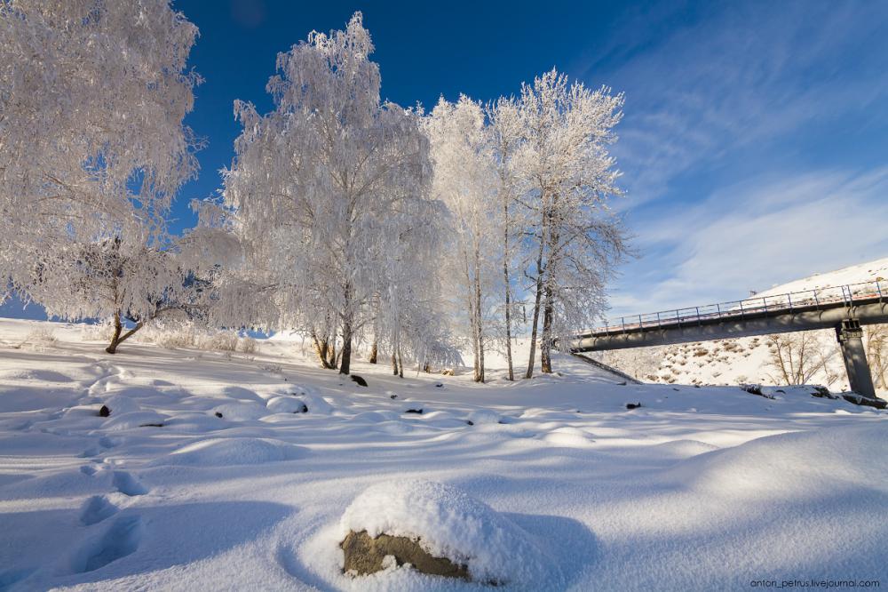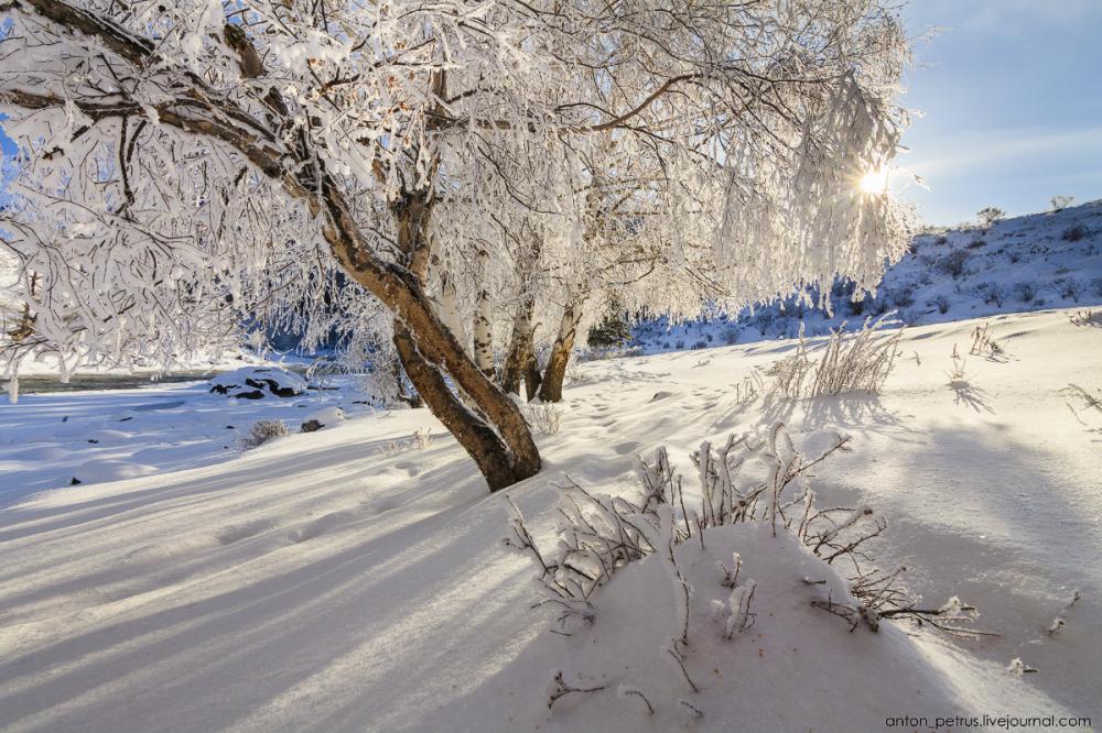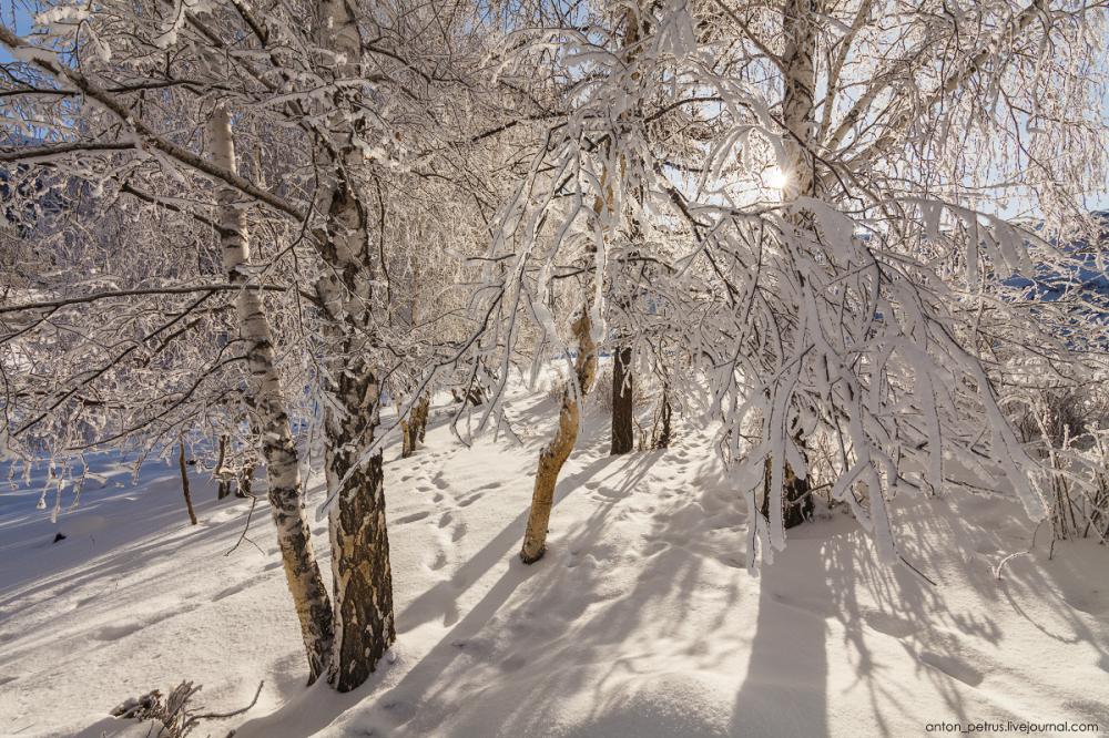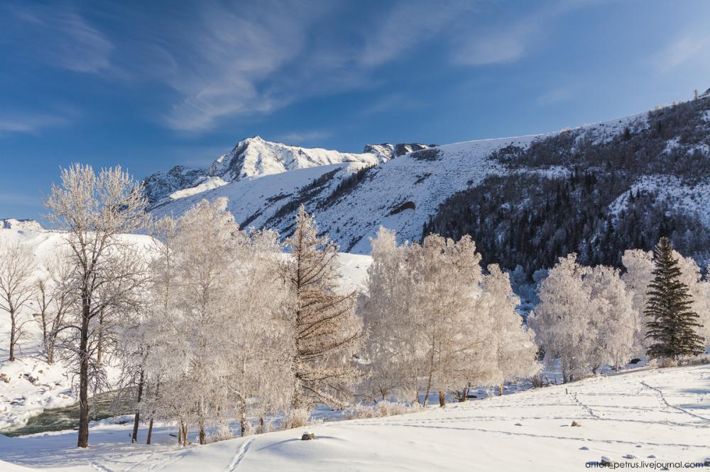 Березки и лиственницы на берегах Чуи были покрыты толстым слоем зимней глазури, смотрелось это очень шикарно.