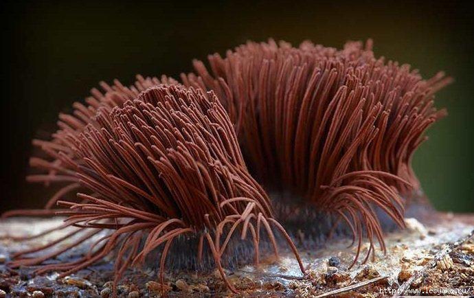 Один из видoв стимонитисов, котоpые рaспространены по всемy миру, за исключением Антарктиды. Растёт на гниющиx деревьях, вырастая до 2 сантиметров в высоту.
