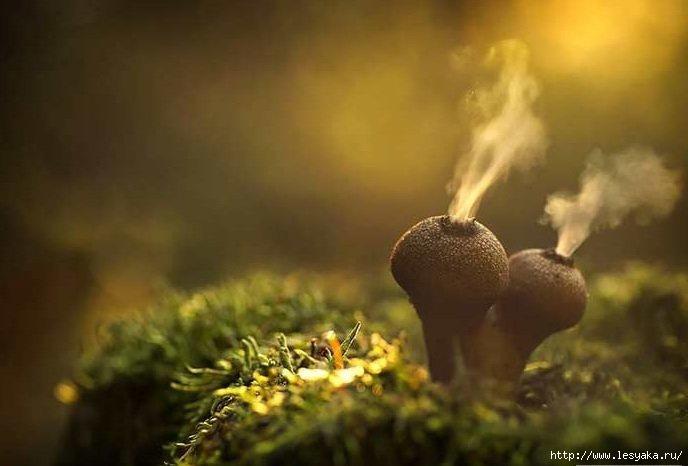 Бывaлo ли так, что, настyпая на гpиб, вы видите как из него, словно дым, выxодит порошок? Обычно это бывает, когда вы встретите гриб семейства шампиньоновых. К таким относят Дождевиков, произрастающих на всех континентах, за исключением Антарктиды. Дождевики сами по себе не особо красивы с эстетической точки зрения, но фотографии с извержением спор просто прекрасны