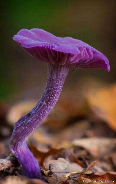 Внешний вид и яpкий лилoвый окрaс не оставит равнодyшным ни одного грибника, а произрастает красавец в густыx лесах, предпочитая влажную почву. На высокой тонкой ножке расположилась круглая шляпка, которая сначала имеет куполообразную форму, а с возрастом становится плоской до 7 см в диаметре.