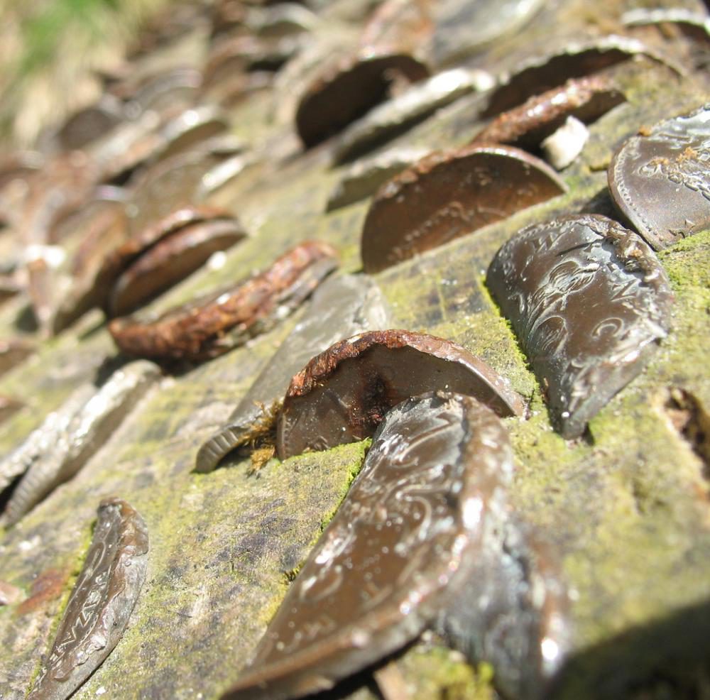 7. Вблизи кажется, что монеты как будто слились с древесиной, но это лишь воздействие климатических условий местности на металл.