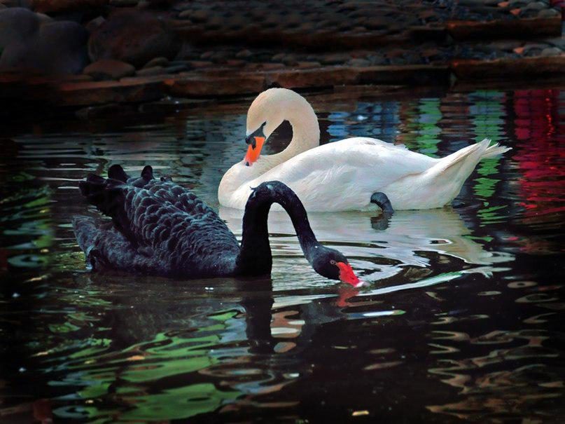 Лебедь поплыл не спеша, и с достоинством. Птица, склонив голову, обречённо ждала. Он замер, раздумывая, взвешивая слова человека, и поплыл к ней, сблизившись, нежно тронул её шею своей, и ВСЁ!!!