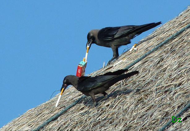 Эти птицы обладают врожденной способностью изготавливать орудия труда. Опыты показали, что едва подросшие вороны, лишенные возможности обучения у родителей, самостоятельно с помощью клюва изготавливают из веток специальные папочки, наподобие зубочисток.