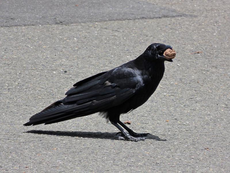 Не так давно, жители Токио наблюдали удивительный случай поведения этих птиц. Городские вороны собирались шумными толпами на перекрестках автомобильных дорог. Они ждали, пока загорится красный свет, и как только машины останавливались, быстро слетались на проезжую часть и раскладывали по асфальту грецкие орехи. Когда машины проезжали, и снова загорался красный свет, хитрые вороны собирали урожай из расколотых орехов.