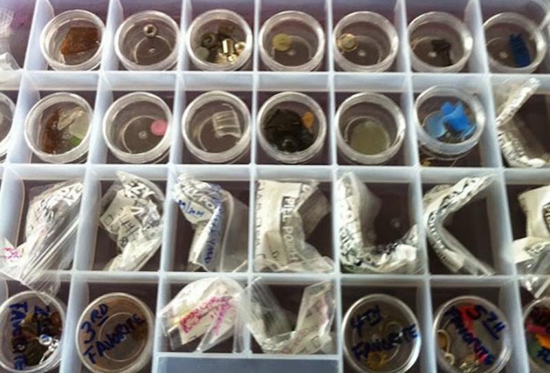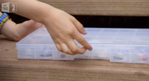 За эти 4 года в ней оказалось множество интересных вещей. Там есть пуговицы, змейка от куртки, гайки, чёрная кнопка, сглаженный кусочек коричневого стекла, брелок жемчужного цвета, который Габи очень нравится.