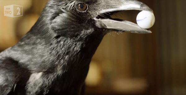 Вороны, как известно, умеют мыслить и решать головоломки, чтобы получить пищу или предмет, который ищут.