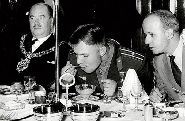 Самая расхожая напоминает исторический анекдот: мол, Гагарин растерялся от многообразия поданный столовых приборов и сказал королеве, что родился в деревне, где привык все есть ложкой. Их высочество очень мило улыбнулась и ответствовала, что тоже путается в ложках, вилках и щипчиках для омаров, и сама взялась за ложку, подав пример присутствующим.