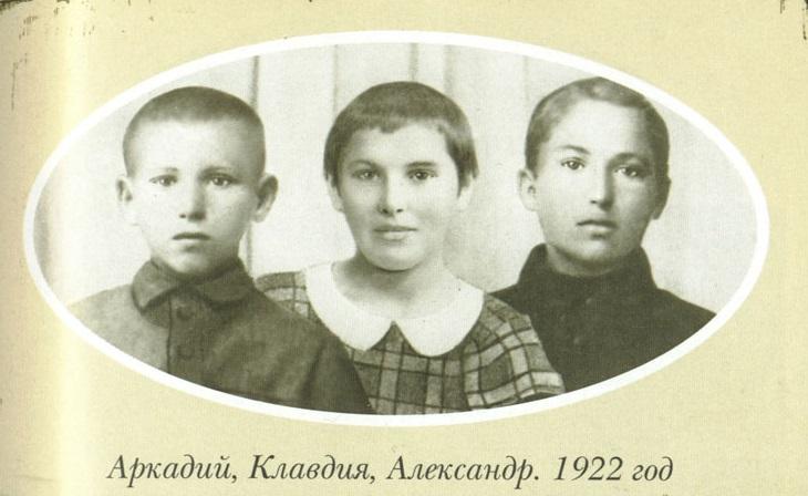 Младший брат Александра Аркадий, который родился 12 августа 1914 года, тоже стал военным, но только лётчиком. Аркадий был, пожалуй, самым красивым и самым талантливым из детей. Уже в 18 лет его избирают членом ВЦИК (Всероссийского Центрального Исполнительного Комитета), что означает депутатскую должность.