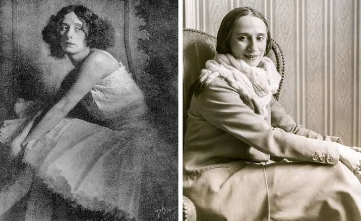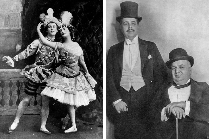 Слева — Анна Павлова и Вацлав Нижинский. Справа — Сергей Дягилев и Альфред Салисбург