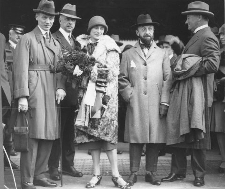 Слева направо: артист балета Лаврентий Новиков, Виктор Дандре, Анна Павлова, композитор Люсьен Вурмсер и юрист Джон Тейт. Сидней, 1926 г.