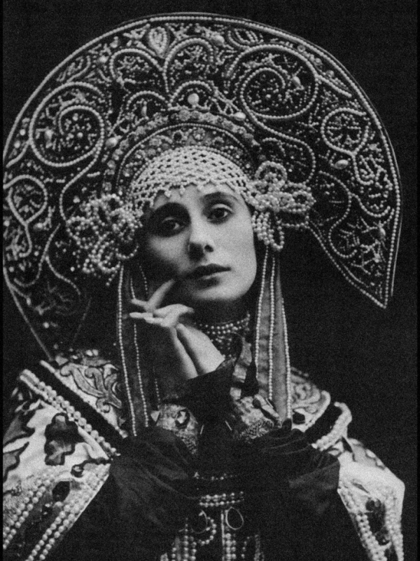 И на всех выступлениях она блистала неотразимыми костюмами. Например, роскошный костюм с кокошником, который был специально сшит для ее первого появления в Лондоне. Павлова в нем танцевала «Русский танец» из балета «Лебединое озеро» П. И. Чайковского на частной вечеринке в Карлтон-Хаусе.