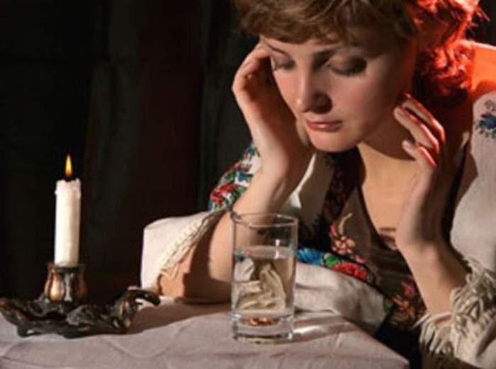 Сначала нужно зажечь свечи и расставить их на столе в виде треугольника, в серединку поставить миску с водой и произнести 3 раза: